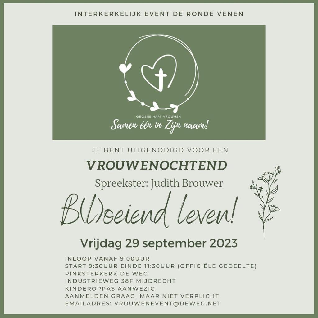 29 september 2023 vanaf 09.00 koffie (start 9.30) in het gebouw van Pinksterkerk De Weg. (boven de karwei in Mijdrecht)