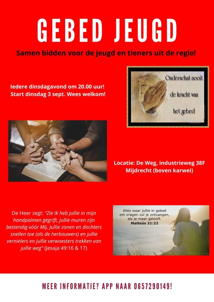 Er is besloten door de kerken uit Mijdrecht (Veenhart, PG Mijdrecht, Leef!, De Weg en de Chr.gerf gemeente), samen na de zomer 2023 gezamenlijk een jeugd(kring) te laten starten, voor jeugd van 16 jaar t/m 25 jaar. Dus niet meer in elke kerk een eigen groepje. Maar gezamenlijk op 1 locatie (De Weg in Mijdrecht) met alle jongeren tegelijk. In de leiding zitten jeugdwerkers uit de verschillende kerken.