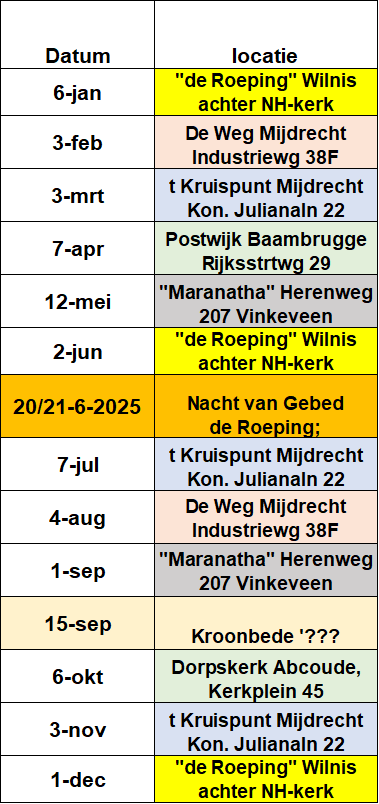 - ‘Nacht van Gebed‘ in juni 2025 (20 juni-21 juni 2025)