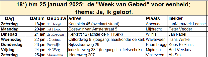 - ‘Week van Gebed‘ januari 2025 (18-25 januari 2025)