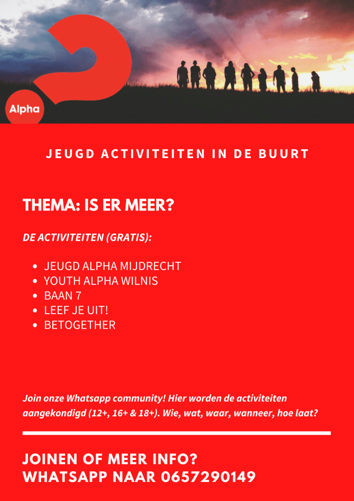 Meer info over de jaarlijkse Jeugd-Alpha en Going Deep in Mijdrecht? Klik hier !!